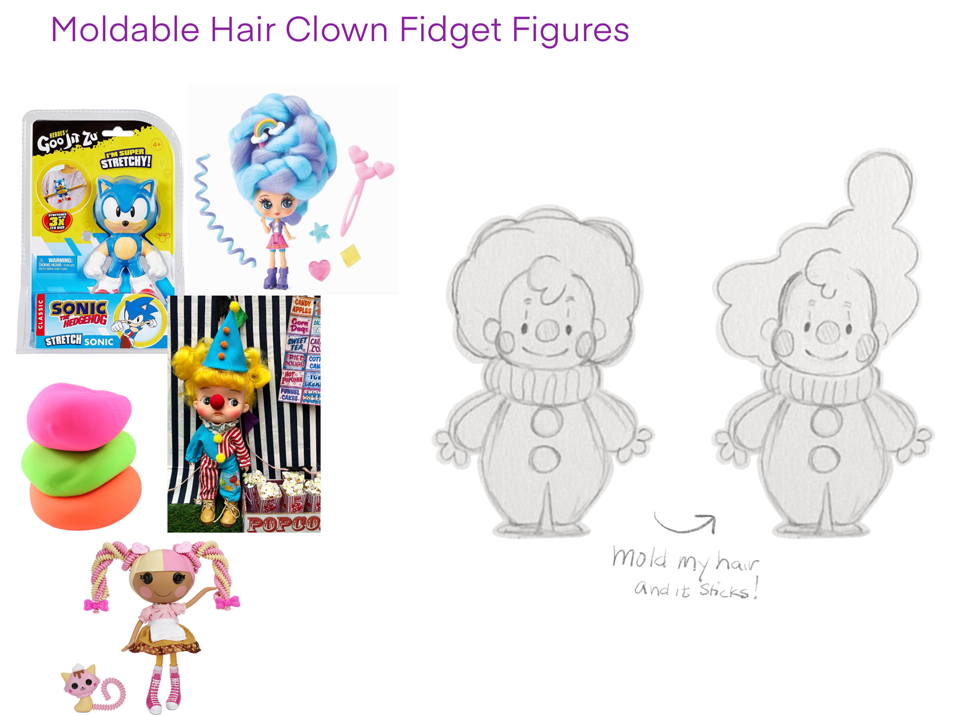Preliminary Concept, Moldable Hair Clown Fidget Figures